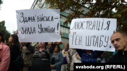 Каля будынку Генэральнага Штабу Узброеных сілаў Украіны адбыўся мітынг з патрабаваньнямі падтрымкі добраахвотным батальёнам на Данбасе.