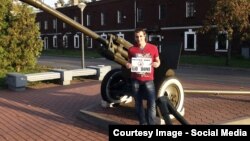 Грамадзкі актывіст Аляксандар Ахмач сфатаграфаваўся з надпісам «Russian army go home» (Расейскае войска, ідзі дахаты) на фоне збудаваньняў, гарматаў і вянкоў з георгіеўскімі стужкамі ў Берасьцейскай крэпасьці.