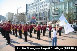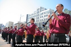 Кіеўскі акадэмічны муніцыпальны духавы аркестар пад кіраўніцтвам Юрыя Мельніка сыграў каля станцыі мэтро Алімпійская два вальсы, прысьвечаныя гораду і гімн Украіны. Піша Арцём Лява.