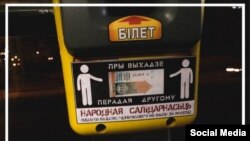 У сацыяльных сетках апублікавалі здымак валідатара у адным зь менскіх аўтобусаў. На валідатары — налепка з заклікам пры выхадзе перадаць талёнчык іншаму пасажыру.