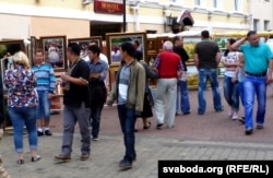Жоўта-блакітныя сьцяжкі толькі прывабліваюць пакупнікоў, ахвотных набыць сувэніры або адчаканіць памятную манэтку. І на віцебскіх вуліцах у натоўпе мінакоў усё часьцей можна сустрэць дзяўчыну ў вяночку або хлопца ў вышыванцы.