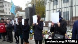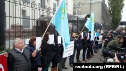Учора ў Кіеве пад амбасадай Расейскай Фэдэрацыі адбылася акцыя крымскіх актывістаў «Паўвыспа страху».