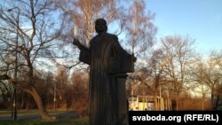 Бронзавае пяро было выламана з рукі Францішка Скарыны яшчэ ўлетку 2013 году.
