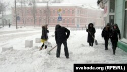 Завея не спыняецца. Са сьнежнымі заносамі змагаюцца тэхніка й людзі.