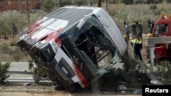У Гішпаніі ў нядзелю, 20 сакавіка, перакуліўся аўтобус са студэнтамі. У выніку аўтакатастрофы загінулі як найменей 14 чалавек. Паводле дадзеных Associated Press, яшчэ 30 чалавек атрымалі раненьні, агенцтва AFP паведамляе пра 43 параненых.