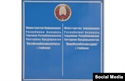 «Міністэрства Інформации Рэспублікиі Беларусь. Гандлевае Прадпрыемства „Вицебскаблсаюздрук“ г. Глубокое», — кажа надпіс па-беларуску.