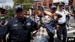 У Нью-Ёрку затрыманы каля 10 маніфэстантаў з ліку тых, якія заблякіравалі рух па адной з аўтатрас. Маніфэстанты несьлі ў руках плякаты з імёнамі Алтона Стэрлінга і Філанда Кастылія, застрэленых паліцэйскімі на гэтым тыдні ў Луізіяне і Мінесоце. На адным з плякатаў было напісана: «Хто наступны?» — на іншым: «Асьцярожна, расізм».