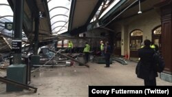 Прыгарадны цягнік сышоў з рэек і ўрэзаўся ў плятформу станцыі Хобакен у штаце Нью-Джэрзі. Відавочцы ў сацыяльных сетках пішуць пра пацярпелых і магчымыя ахвяры аварыі.