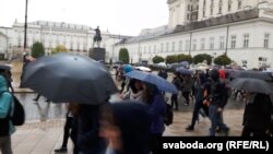 Пасьля свайго позьняга сьняданьня выходжу на Сьвентакжыскую вуліцу, дождж. Па другім баку, спачатку па ходніку, затым па вуліцы рухаецца калёна ў чорным, тысячы людзей. І не сканчаецца. Мне якраз па дарозе, меўся абысьці свае кнігарні, куды заўсёды зазіраю. І зьявіўся журналісцкі азарт. Я бачыў розныя шэсьці ў Варшаве і дастаткова людныя. Бачыў мінулым летам і вельмі сьціплую працэсію з крыжам і Маткай Боскай. І гэта ў зьнешне вельмі рэлігійнай краіне.