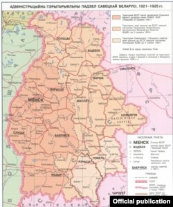 «У 1919 годзе, калі ўжо было абвяшчэньне БНР і сталі асабліва настойлівымі прэтэнзіі Польшчы да Савецкай Расеі на аднаўленьне межаў да падзелу Рэчы Паспалітай, бальшавіцкія правадыры пакінулі БССР толькі 52,4 тысячы квадратных кілямэтраў тэрыторыі, на якой пражывала каля паўтара мільёна чалавек, хоць першапачаткова БССР усталёўвалася ў межах 300 тысяч квадратных кілямэтраў з насельніцтвам каля 10 мільёнаў.