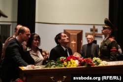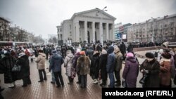 Затым працэсія накіравалася ў Беларускую дзяржаўную філярмонію, дзе да 14-й гадзіны праходзіць грамадзянская паніхіда, якую наведалі сотні людзей.