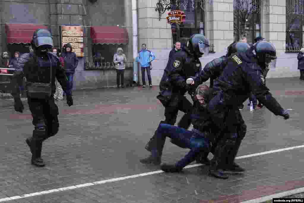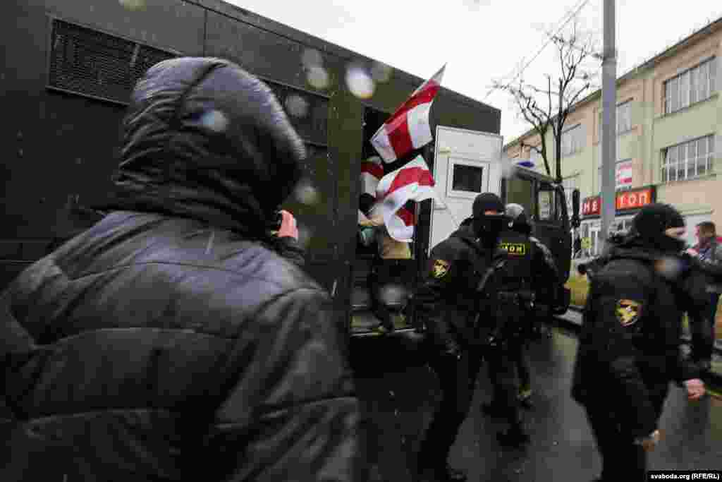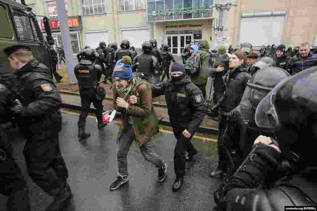 ў гонар 99-й гадавіны абвяшчэньня незалежнасьці Беларускай Народнай Рэспублікі. За час акцыі затрыманыя сотні чалавек, дзясяткі журналістаў.