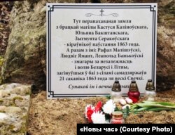 Як піша газэта «Новы час», да помніка на магіле паўстанцаў былі ўскладзеныя кветкі, запаленыя зьнічы. На манумэнце пазначаныя імёны Рафала Малішэўскага, Людвіга Яманта, Леапольда Банькоўскага. Яны загінулі 21 сакавіка 1863 году ў змаганьні з расейскімі рэгулярнымі войскамі ля ракі Сьвечкі.