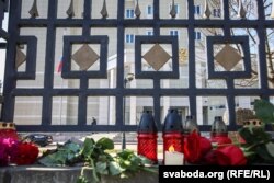 У панядзелак і на наступны дзень пасьля выбуху ў пецярбургскім мэтрапалітэне жыхары Менску ўсклалі кветкі пад амбасадай Расеі ў Беларусі, запалілі зьнічы.