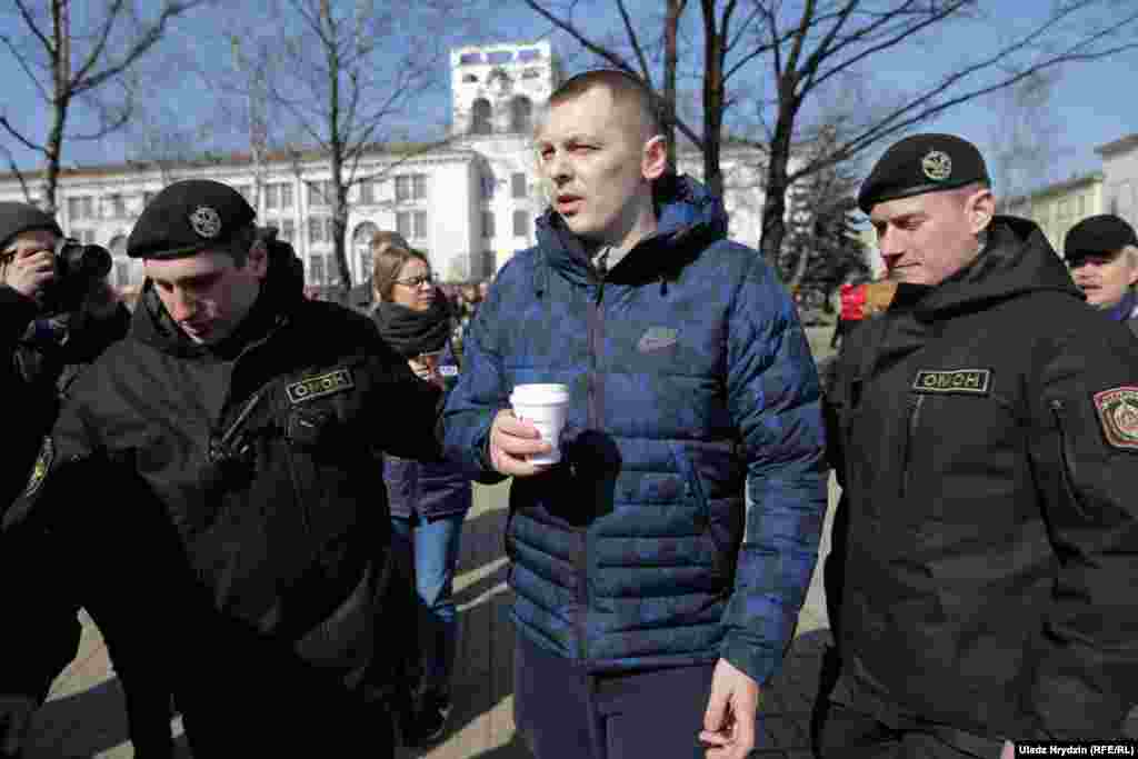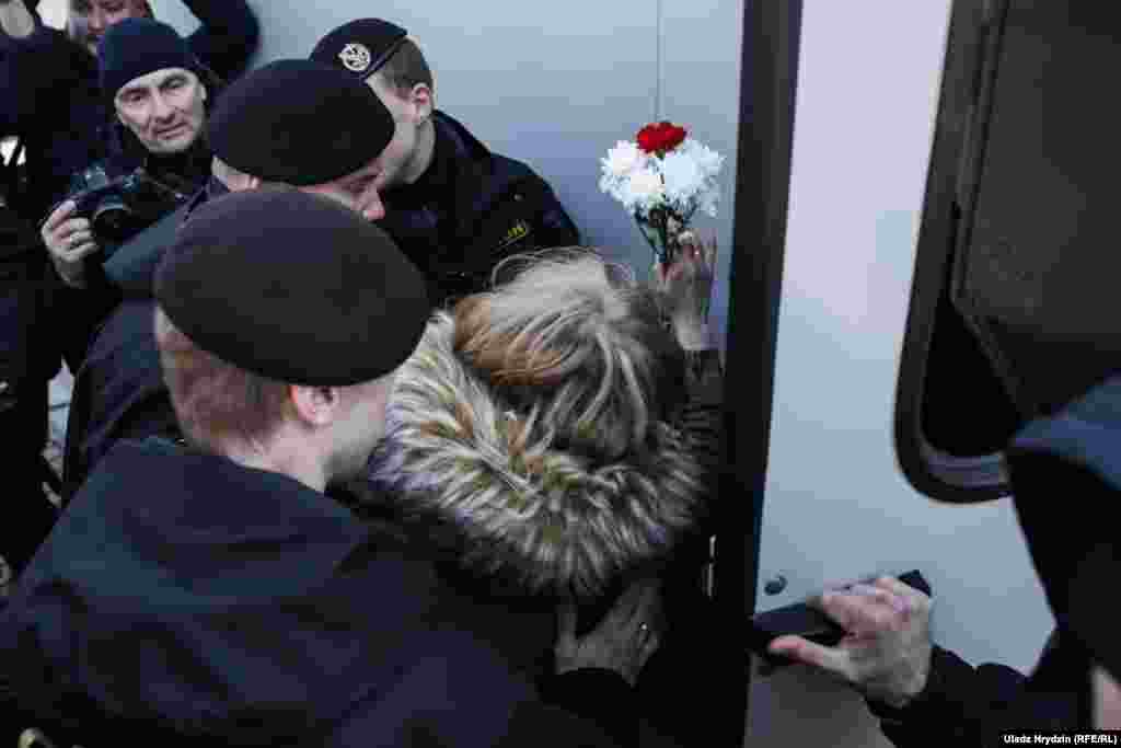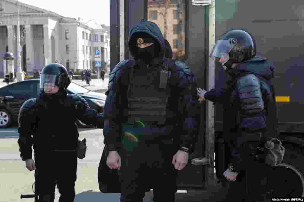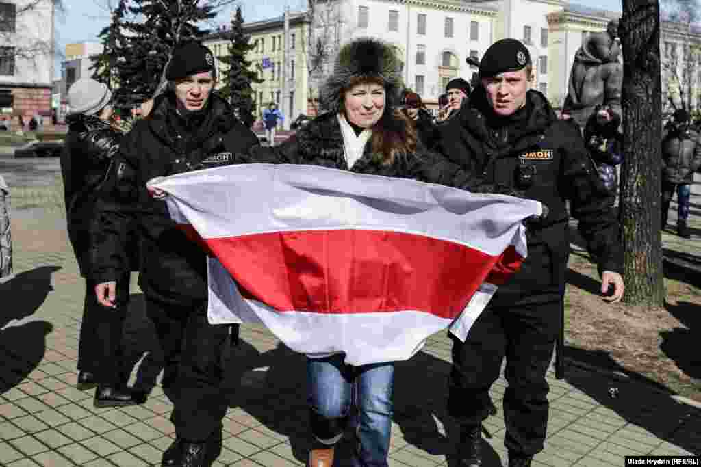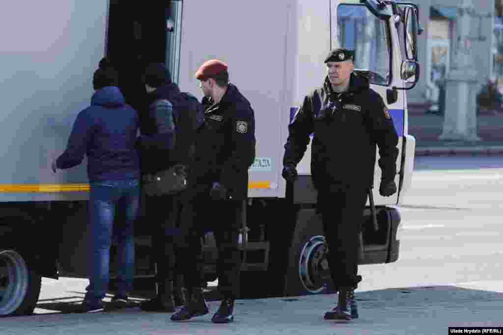 Як перадае карэспандэнт Свабоды, спачатку затрымлівалі ўсіх, хто меў пры сабе бел-чырвона-белыя сьцягі, кветкі, — «для высьвятленьня асобы». Потым пачалі затрымліваць усіх, хто знаходзіўся на плошчы. Падчас затрыманьняў прадстаўнік міліцыі настойліва папрасіў журналістаў не «перашкаджаць працаваць супрацоўнікам міліцыі».