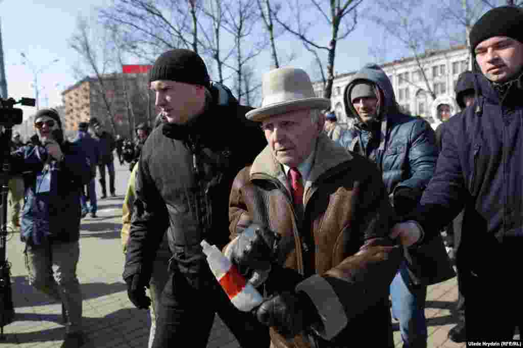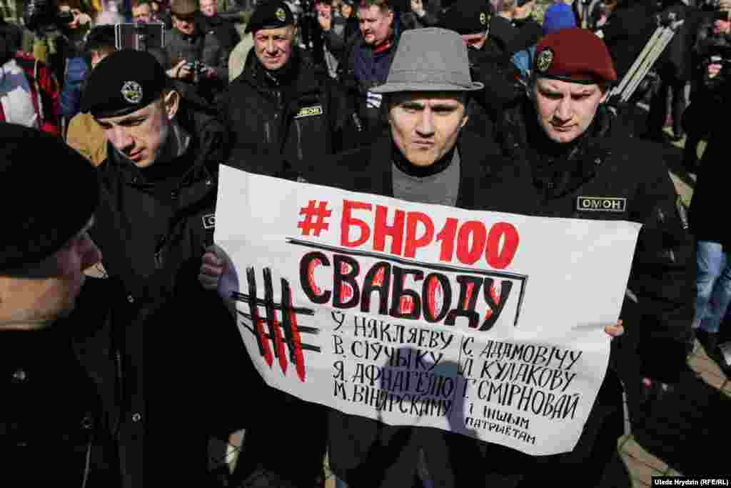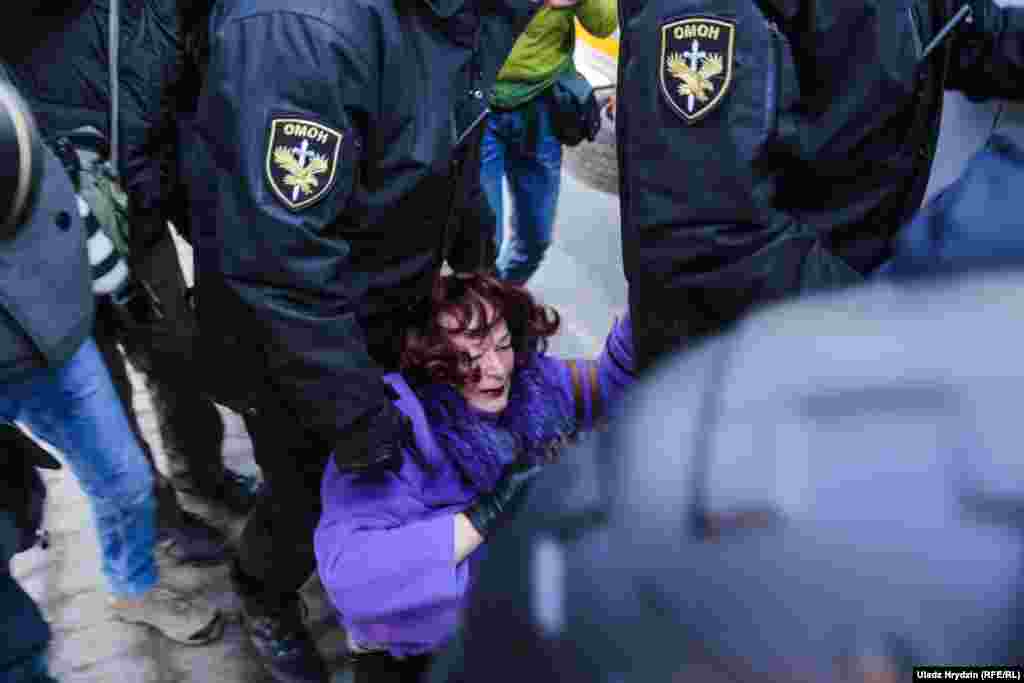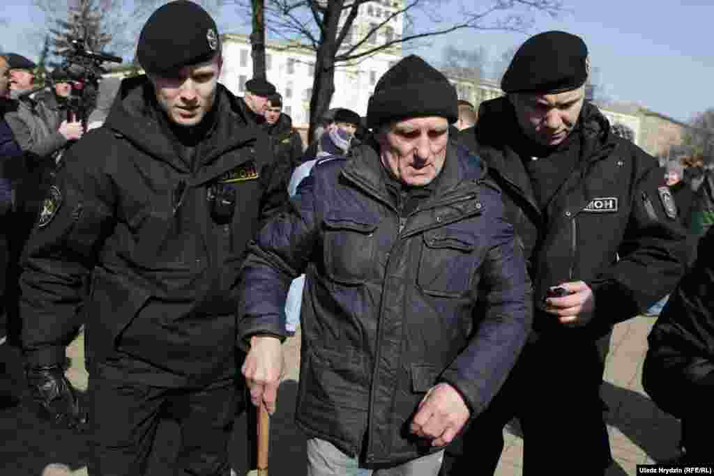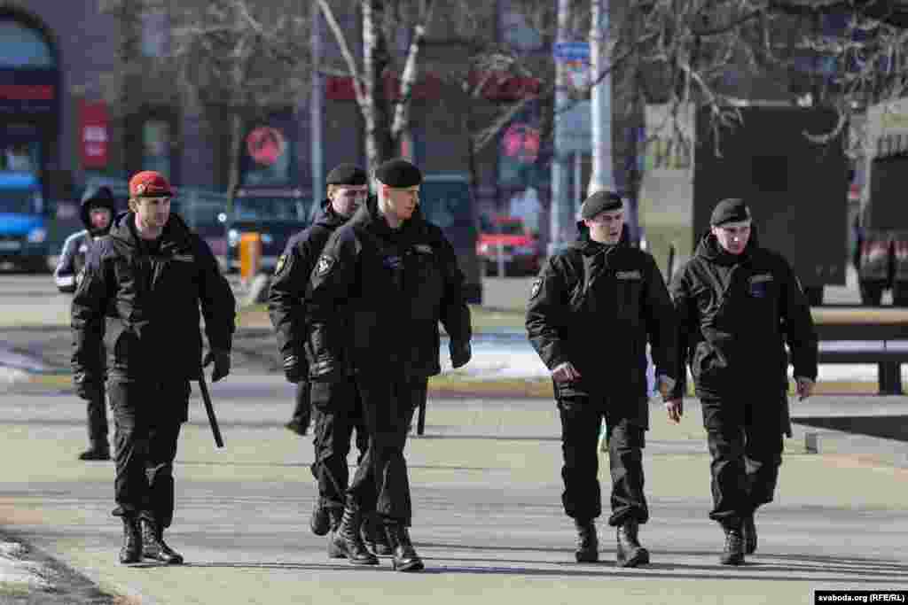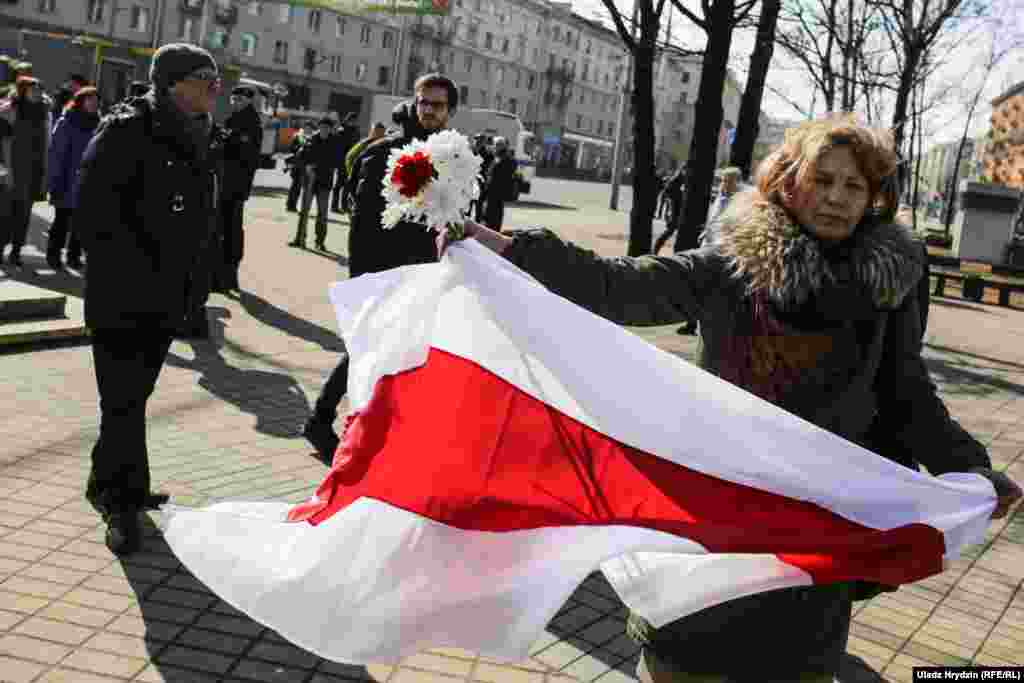 Як перадае карэспандэнт Свабоды, спачатку затрымлівалі ўсіх, хто меў пры сабе бел-чырвона-белыя сьцягі, кветкі, — «для высьвятленьня асобы». Потым пачалі затрымліваць усіх, хто знаходзіўся на плошчы. Падчас затрыманьняў прадстаўнік міліцыі настойліва папрасіў журналістаў не «перашкаджаць працаваць супрацоўнікам міліцыі».