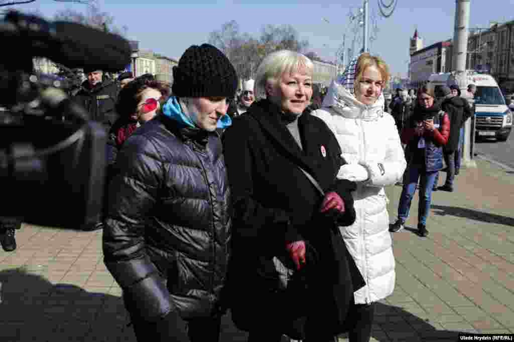 Як паведаміла сустаршыня руху салідарнасьці «Разам» Алена Талстая, затрыманых на плошчы Якуба Коласа ў аўтазаках адвезьлі ў Савецкі РУУС Менска.