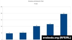 Паводле расейскай праваабарончай арганізацыі «Мэмарыял» колькасьць палітычных зьняволеных у Расеі дасягнула амаль 200. Чатыры гады таму іх было ў чатыры разы менш.