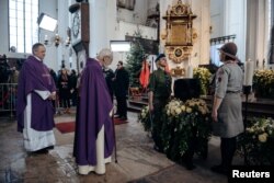 Урну з прахам мэра Гданьска Паўла Адамовіча пахавалі ў капліцы Марыяцкай базылікі, адной з найбуйнейшых цагляных цэркваў сьвету.