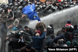 Паліцыя ўжыла супраць пратэстоўцаў вадамёты і затрымала некаторых удзельнікаў акцыі, у тым ліку лідэра апазыцыйнай партыі "Гірчы" Зураба Джапарыдзэ.