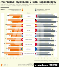 Хоць на COVID-19 мужчыны і жанчыны захворваюць прыблізна ў аднолькавай прапорцыі, выглядае, што жанчыны паміраюць ад гэтай хваробы значна радзей.
