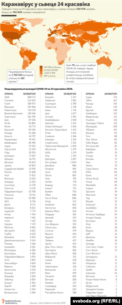 Наглядна: каранавірус у сьвеце 24 красавіка