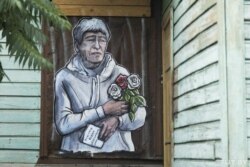 Графіці намалявалі на сьцяне аднаго з закінутых дамоў у цэнтры Берасьця. На ім Галіна Філіпаўна з трыма кветкамі і нататнікам з цытатай зь песьні «Стены рухнут».