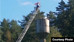 У садоўніцкім таварыстве «Гарадзішчанская Вішнёўка» Калодзішчанскага сельсавету пажарныя і міліцыянты зьнялі са шматмэтровай воданапорнай вежы бел-чырвона-белы сьцяг.
