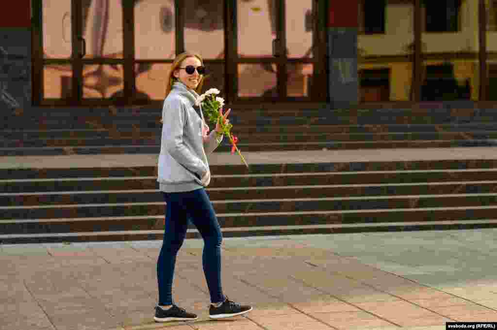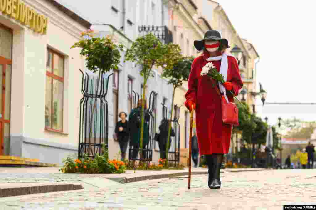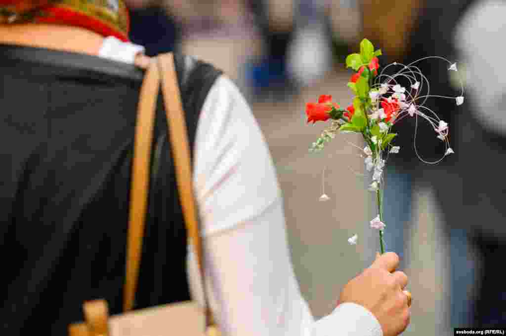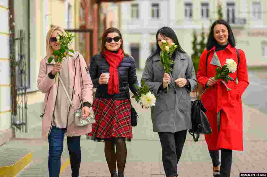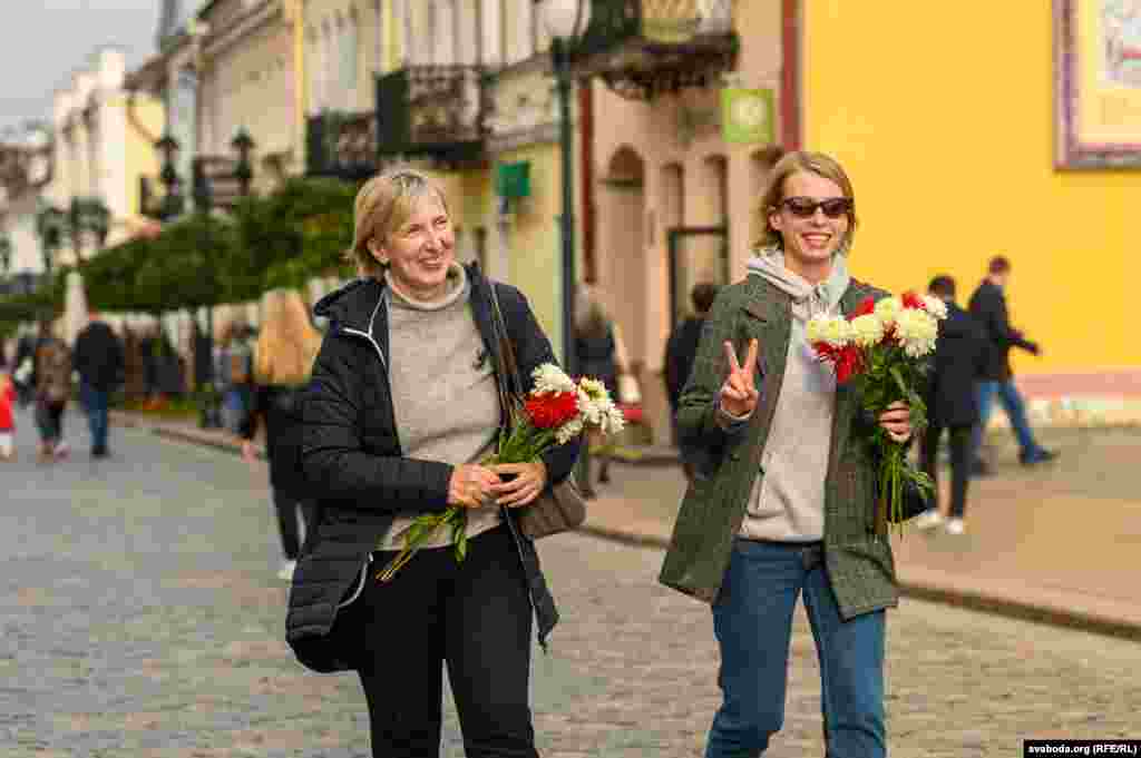 У цэнтры Горадні ўдзень 10 кастрычніка жанчыны гулялі з кветкамі. Так яны паказалі сваю нязгоду з палітычнымі рэпрэсіямі.