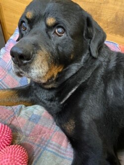 Яна разьмясьціла абвестку пра тое, што сабака Андрэя — 13-гадовы ратвэйлер Рэй — шукае новы дом.