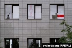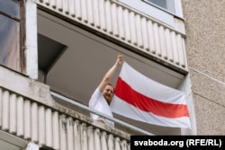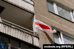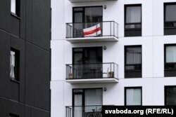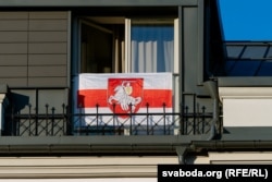 Вольга Зазулінская: «Сьцяг у мяне вісіць зь першага дня, як я пераехала ў Вільню. Я яго не здымаю, не здымала, калі пачалася вайна. Я хацела заявіць, што мы тут. Што мы такія ж людзі, якія хочуць свабоды сваёй краіне, і што нас трэба ўлічваць і бачыць. Мы засталіся ў полі, у фокусе, і гэта такая салідарнасьць з усімі на заклік вывешваць сьцягі да саміту NATO.
