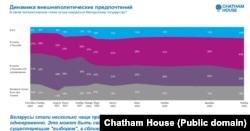 — Рыгор, падчас вашага апошняга апытаньня задавалася традыцыйнае пытаньне пра геапалітычны выбар паміж Эўропай і Расеяй. З графіку бачная выразная перавага прарасійскіх памкненьняў. Але варта сказаць, што ў мінулым, у пэўныя пэрыяды гісторыі Беларусі, апытаньні фіксавалі нават перавагу праэўрапейскіх настрояў над прарасейскімі. Цяперашні стан, зафіксаваны на графіку — ці можа ён зьмяніцца ў выніку зьмены палітыкі, інфармацыйнай у тым ліку? Ці гэтая перавага прарасейскіх настрояў — гэта доўгатэрміновы трэнд.