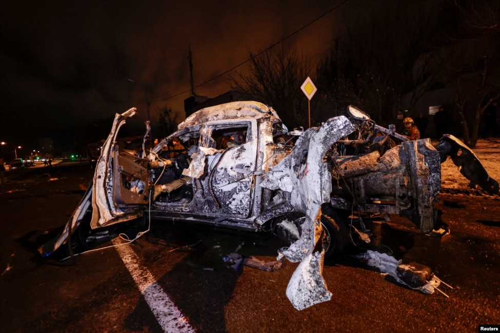 Адна бомба незадоўга да 16-й гадзіны ўпала на ажыўленую трасу Харкава. Загарэліся машыны.