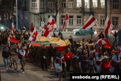 Пасьля мітынгу, расьцягнуўшы над сабой два вялікія сьцягі — бел-чырвона-белы нацыянальны беларускі і дзяржаўны літоўскі — калёна з воклічамі «Жыве Беларусь!» і «Ачу Летува!» (Дзякуй, Літва!) прайшла па цэнтральных віленскіх вуліцах да будынка амбасады Беларусі, дзе находзіцца «Варта памяці» — мэмарыял беларусам, якія загінулі ў змаганьні з дыктатурай і на вайне за незалежнасьць Украіны. Да партрэтаў герояў удзячныя беларусы ўсклалі зьнічкі і кветкі.