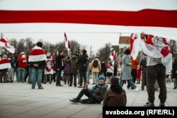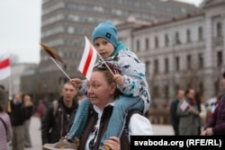 Заклік зьберагчы незалежнасьць Беларусі і дамагчыся для яе дэмакратычнага выбару прагучаў і ў звароце да мітынгоўцаў Сьвятланы Ціханоўскай, выступ якой яны бачылі на экране, усталяваным на плошчы. Лідэрка дэмакратычных сілаў Беларусі асабліва падзякавала актывістам грамадзкай арганізацыі «Дапамога», якія ў Вільні апякуюцца былымі палітвязьням і змагаюцца за вызваленьне тых, хто застаецца ў няволі. «Пакуль усе палітвязьні ня выйдуць на волю, наша барацьба не спыніцца», — запэўніла віленскіх беларусаў Сьвятлана Ціханоўская.