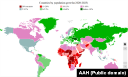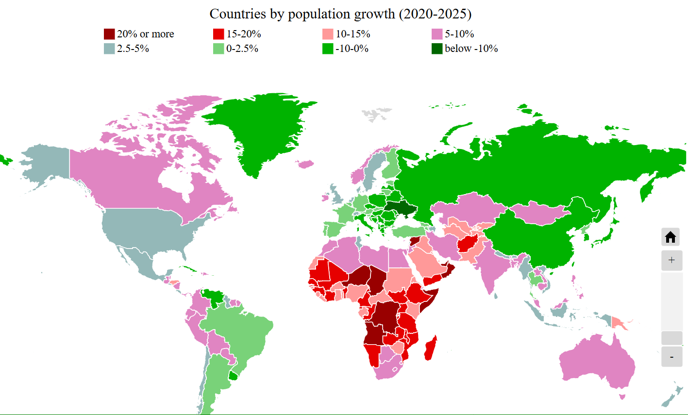 Краіны паводле тэмпу росту насельніцтва, 2020–2025