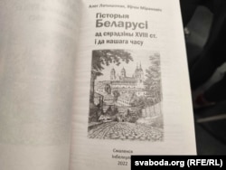 Палынскі таксама зьвярнуў увагу на такую дэталь: кнігу з гісторыі Беларусі выдалі ў Смаленску ў 2022 годзе. Пры гэтым у ёй няма ні слова па-расейску нават у выходных зьвестках.