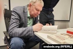 На стале ляжалі рэшткі накладу — з тузін асобнікаў, якія можна было купіць і ўзяць у аўтара аўтограф у канцы сустрэчы.