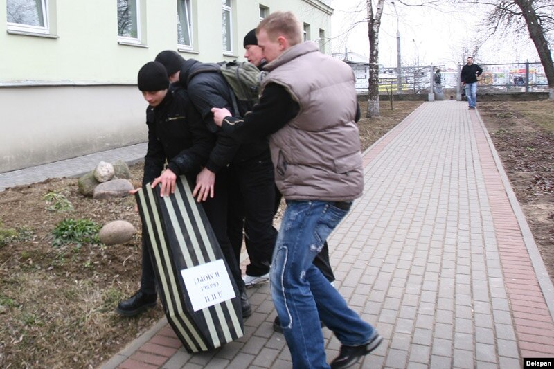 Удзельнікі флэш-мобу мелі намер перадаць у ДВП зварот. Пры гэтым яны несьлі з сабой маленькую кардонную труну. Труна павінна была сымбалізаваць, што можа здарыцца са зьняволенымі, пазбаўленымі мэдычнай дапамогі. На падыходзе да будынка ДВП удзельнікаў акцыі затрымалі супрацоўнікі міліцыі ў цывільным.