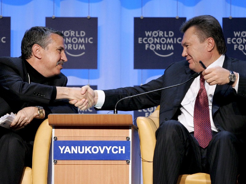 25 студзеня. Томас Фрыдман, аглядальнік “Нью-Ёрк Таймс”, і прэм’ер-міністар Украіны Віктар Януковіч у часе працы Ўсясьветнага эканамічнага форуму, Давос