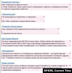 Расейскія Z-блогеры масава пішуць пра адключэньні тэрміналаў спадарожнікавага інтэрнэту Starlink па ўсёй лініі фронту ва Ўкраіне. Яны робяць акцэнт на тым, што гэта пакіне бяз сувязі ня толькі ўдарныя дроны, але і штурмавыя падразьдзяленьні, і, магчыма, нават верне расійскае войска ў «стан пачатку СВА ў 2022 годзе», перадае «Настоящее время».