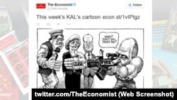 На карыкатуры выданьня The Economist падобны да Аляксандра Лукашэнкі пэрсанаж у фуражцы з надпісам «Украіна» прадстаўлены як удзельнік «нармандзскай сустрэчы» ў Менску.
