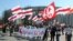 “Можа быць, што ланцуг міліцыянтаў выстраіцца на шляху калёны і скажуць: туды не ісьці. Прарываць ланцугі мы не зьбіраемся. Але будзем мірна ісьці ў бок Чарнобыльскай капліцы”.