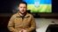 Прэзыдэнт Украіны Уладзімер Зяленскі дае прэс-канфэрэнцыю на станцыі мэтрапалітэну ў Кіеве.